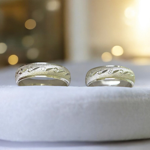 Alianzas de Plata 925 con delicado diseño texturizado y detalles decorativos en relieve, que simbolizan un camino compartido lleno de momentos brillantes.