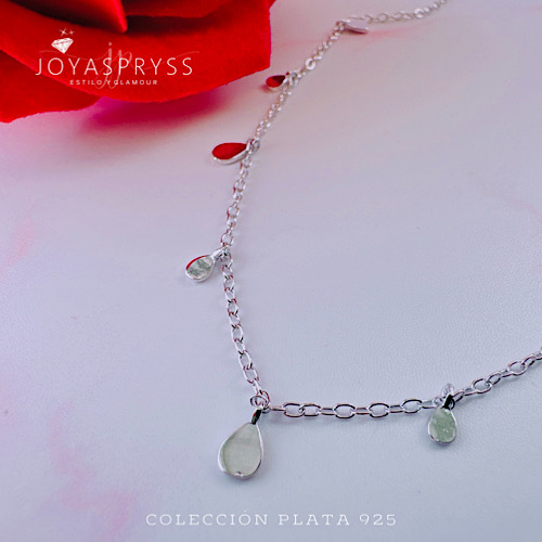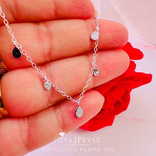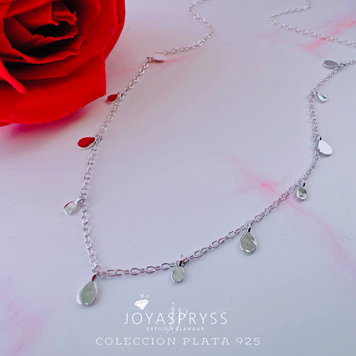 Diseño: Collar con delicados dijes en forma de gotas. Un diseño sutil y elegante que aporta movimiento y brillo natural a tu estilo.