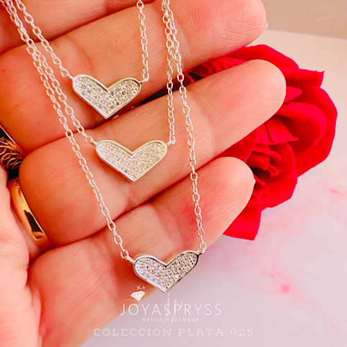 COLLAR PLATA – CORAZÓN TRIPLE GLAM