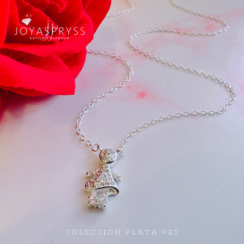 Collar con dije de niña pavé, lleno de brillo y acabado glam. Una pieza moderna, delicada y luminosa, ideal para destacar con un toque elegante y adorable en cualquier look. .