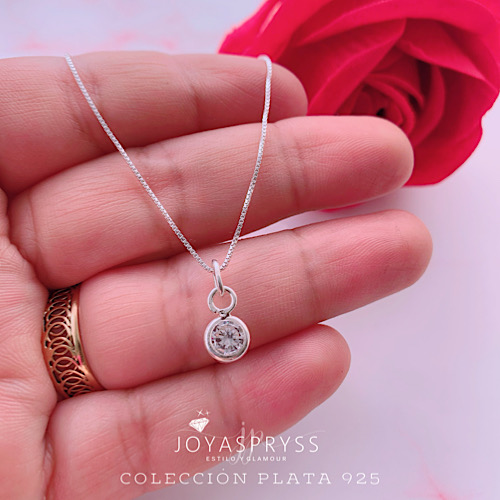 Collar en plata 925 con circón central de alto brillo en engaste pulido. Un clásico imprescindible que ilumina cualquier look con elegancia y simplicidad glam.