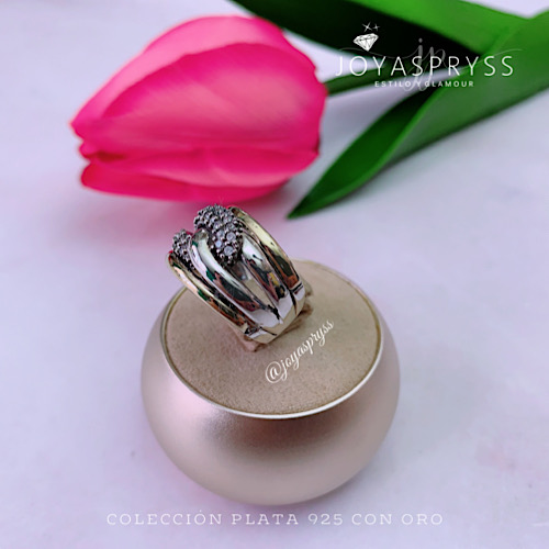 ANILLO ZIRCÓNES ONIX PLATA/ORO