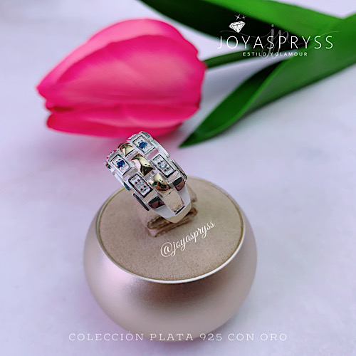 ANILLO BARRA DE ORO CRUZADO PLATA/ORO