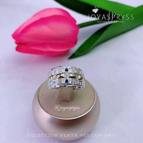 ANILLO BAGUETTE ZAFIRO PLATA/ORO