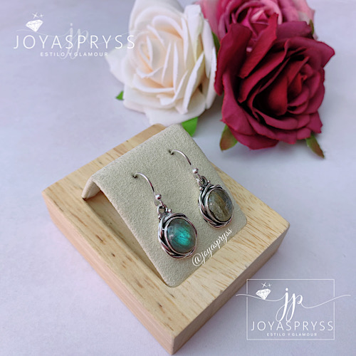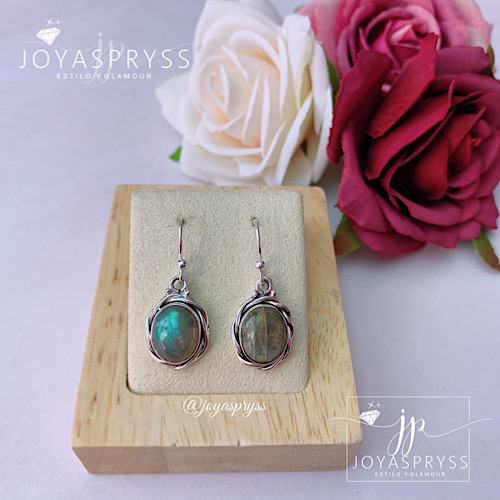 Aros Colgante Ovalado Piedra Natural Labradorita