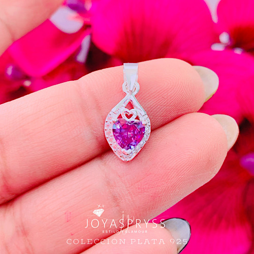COLGANTE PLATA – CORAZÓN RUBÍ