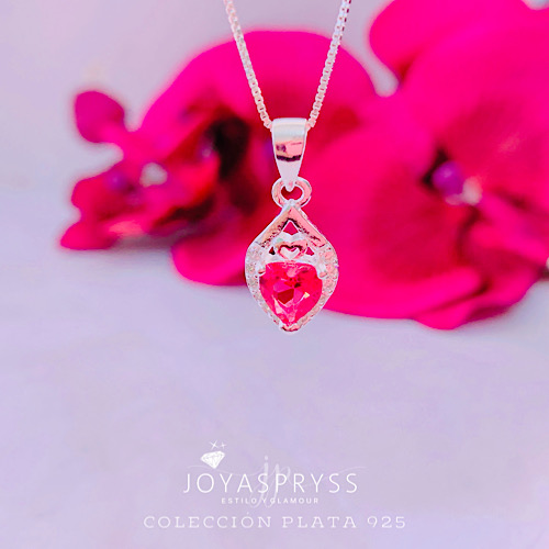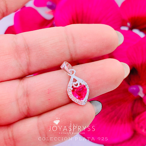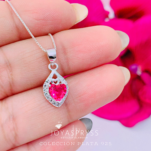COLGANTE PLATA – CORAZÓN RUBÍ