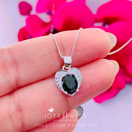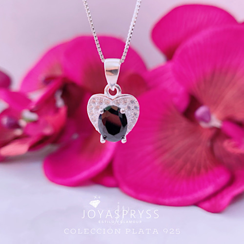 COLGANTE PLATA – CORAZÓN ONIX