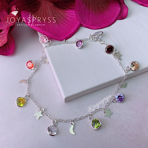 TOBILLERA PLATA – CHICHES MOON STARS MULTICOLOR