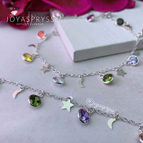 Diseño: Tobillera Chiches Moon Stars Zircones Multicolor