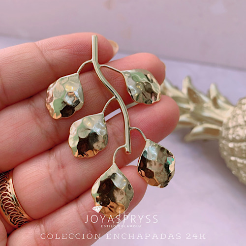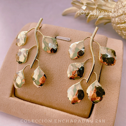 ENCHAPADO ORO 24K – ARITOS HOJAS MOD119