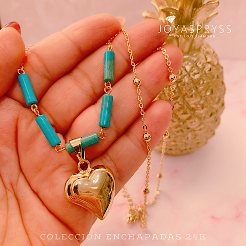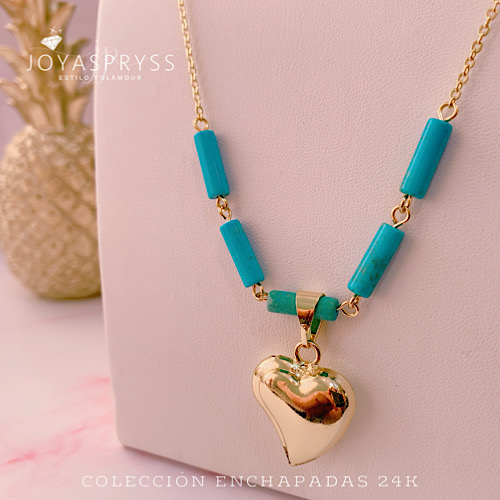 ENCHAPADO ORO 24K – COLLAR LOVE TURQUESA MOD153