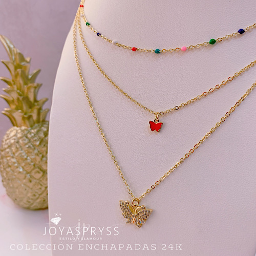 ENCHAPADO ORO 24K – COLLAR TRIPLE MARIPOSAS MOD160