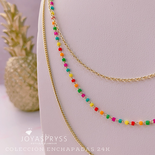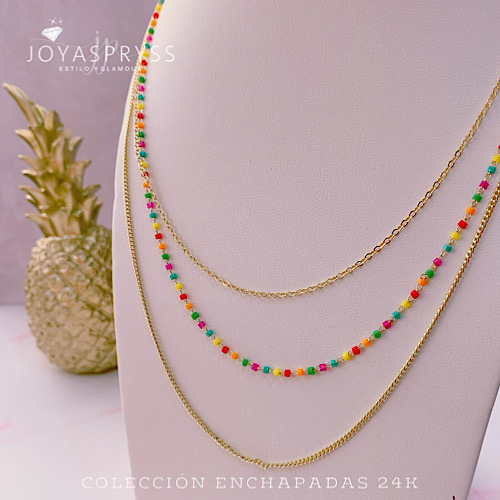 ENCHAPADO ORO 24K – COLLAR TRIPLE MULTICOLOR MOD156